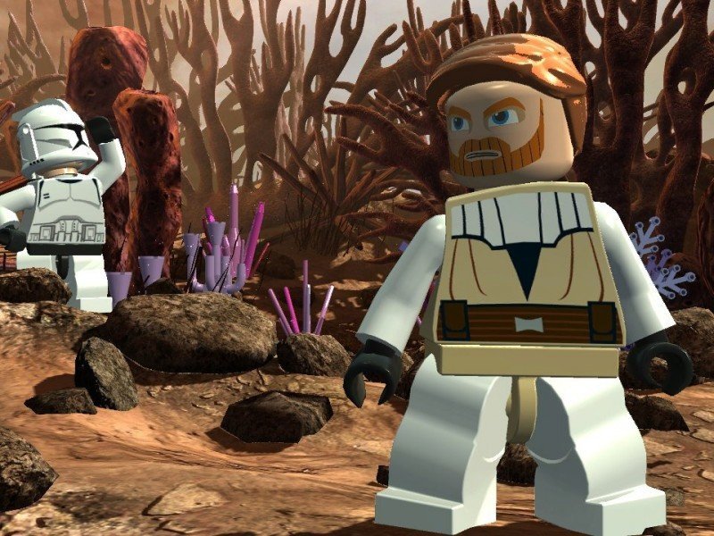Ce qui fait la particularité du jeu c'est son univers en LEGO : tout, absolument tout le décor et les personnages sont faits en pièces de LEGO, ces petits morceaux de plastiques mondialement connus. Par conséquent on trouve de drôles de mécanismes de jeux, et il est possible de détruire les décors pour ensuite mieux les reconstruire afin de se frayer un chemin pour continuer à avancer. En revanche, les missions prenant place sur un champ de bataille (où les deux forces en présence peuvent construire des bases militaires) se montrent finalement assez redondantes et assez mal exploitées. Et lorsqu'on découvre que les modes de jeux bonus se basent sur ce concept,