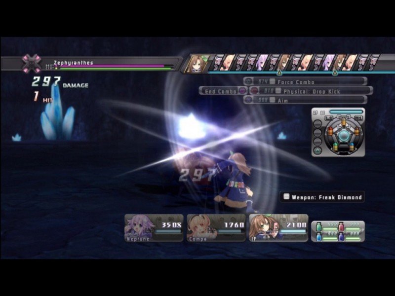 Que dire de la réalisation technique ? Trinity Universe et Cross Edge exploitaient déjà très peu les capacités de la PS3, Hyperdimension Neptunia ne fait guère mieux. Les graphismes sont mêmes indignes d'une PS2, et auraient davantage leur place sur une console portable. Les scènes de dialogues en 2D sont plutôt réussies, mais dès que le jeu passe en 3D (dans les donjons), le visuel est étrange et manque singulièrement d'attention. Que penser du système de combat qui se montre certes complet, mais également mal étudié, et relativement exigeant ? A l'instar de nombreux jeux de rôles japonais, les affrontements ont lieu au tour par tour. La touche triangle permet de servir de la magie, croix déclenche un coup puissant, tandis que carré est dédié aux attaques rapides et rond des compétences particulières. En les utilisant, vous serez à même de lancer des combos pour le moins impressionnant, encore faudra t-il s'en sortir dans les menus en anglais, le jeu ne bénéficiant d'aucune localisation française (à l'exception du manuel) tandis que les voix des personnages sont restées en japonais. Le réel point fort du jeu reste sa durée de vie, qui dépasse allègrement les quarante heures. Encore faudra t-il avoir l'envie d'aller jusque là, ce qui n'est absolument pas garanti, surtout avec une pareille bande son.