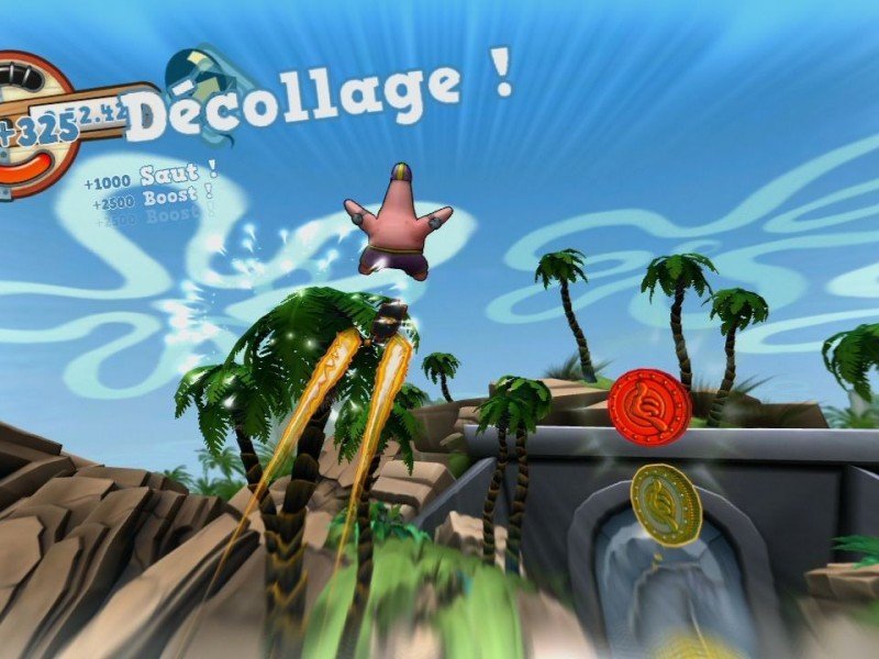 Contrairement à ce qu'on aurait pu penser, Bob l'Eponge : Surf & Skate Roadtrip n'est pas un party game, mais un simili jeu de course. A l'instar d'un Sonic Riders, vous voici sur une planche (qui peut être de surf ou de skate dans Bob l'Eponge) et devez diriger les mouvements du personnage (Bob ou Patrick) avec votre corps. La reconnaissance du Kinect est d'ailleurs plutôt efficace, il est vrai que la jouabilité du jeu se montre extrêmement basique. Si les premières parties pourront faire sourire, le titre devient rapidement redondant hélas. Certes, le comportement des planches varient quelque peu d'un modèle à l'autre, et il est possible de débloquer de nouvelles courses en enchaînant les records (ce qui ne devrait pas être trop difficile). Outre le mode principal, on trouvera plusieurs défis qui vous demandent de passer à travers des portes sans les toucher, un mode Parcours du combattant jonché de pièges, l'Accélérateur où il faut terminer la course le plus rapidement possible, un classique contre-la-montre, ou encore le Pro de la planche qui imposera de conservera la jauge du "déchire-mètre" dans une valeur positive. Bien sur, un mode deux joueurs est également présent en écran splitté.