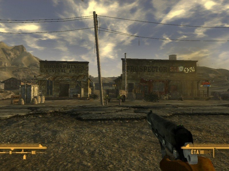 Une fois seul dans la partie, votre objectif premier sera de vous venger de vos agresseurs qui vous ont littéralement mis en morceau dans le village de Goodspring. Le personnage est en effet en sale état, et on ne sait pas vraiment pourquoi. Puisqu'il est coursier, se pourrait-il que les mafieux aient voulu récupérer une livraison ? Quoiqu'il en soit, cette tâche est loin d'être facile et sera prétexte d'explorer ce monde dangereux en situations. Et comme c'est désormais la coutume, des missions secondaires viendront se greffer à la partie en cours de route, vous obligeant parfois à faire un long détour sur la carte. Heureusement, une option dite de fast travel, permettant de rejoindre rapidement une zone déjà découverte, est présente, ce qui sera plus d'une fois salvateur.