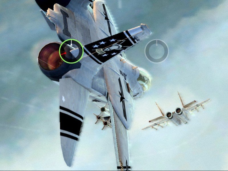 Si l'univers Top Gun : Hard Lock s'inspire du long métrage, il ne s'agit pas du tout d'une adaptation du célèbre film des années 1980. On retrouve certes quelques personnages connues et les fameuses musiques, mais c'est à peu près tout. La campagne solo se déroule en effet en 2012, où les meilleurs éléments de l'élite de l'aéronavale livreront leurs premiers faits d'armes. On retrouve quinze missions assez dirigistes, essentiellement des attaques de chasseurs ennemis et de protections de vos alliés. Mais qu'est-ce que le Hard Lock me direz-vous ? Eh bien il s'agit d'un mode spéciale qui apparaît lors d'un combat aérien en se positionnant derrière les ennemis. Une icône F surgit alors au-dessus de la cible, et permet de verrouiller l'ennemi. La cible peut essayer d'effectuer des manoeuvres de décrochage pour échapper à vos tirs, mais il est assez facile de les contrer. Pour lancer une MCA (Manoeuvre de Combat Aérien), vous devrez suivre les indications qui apparaissent à l'écran, et les deux flèches pointant la direction à suivre avec le stick analogique. Si vous réussissez, la chasse continuera. Dans le cas contraire, vous deviendrez la cible.