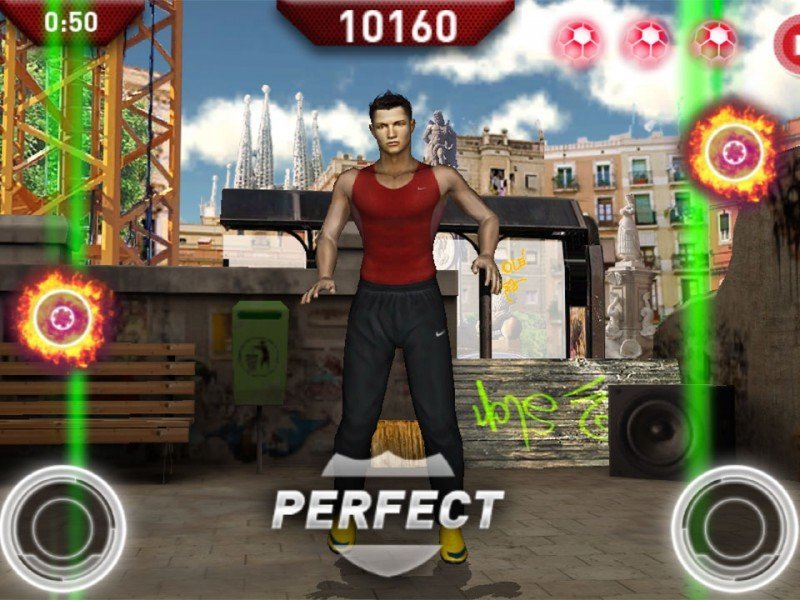 Hélas, sur le plan technique, la filiation iOS/Android est très perceptible. Le graphisme manque singulièrement de précision et surtout de finition. La modélisation de Ronaldo n'est pas des plus flatteuse, quant aux textures, elles s'avèrent très basiques, c'est le moins que l'on puisse dire. Les décors sont d'ailleurs souvent constitué d'un fond totalement plat. Les animations sont heureusement assez dynamiques. Quant à la prise en main, il faudra essentiellement se servir des touches du clavier pour effectuer les figures demandées. Un gameplay très basique, donc excessivement accessible. Mais quid des musiques ? On retrouve de la pop sous licence, des chansons latino et des compositions davantage rock. Un ensemble plus que correct, au contraire des bruitages assez creux.