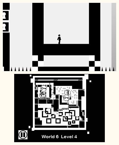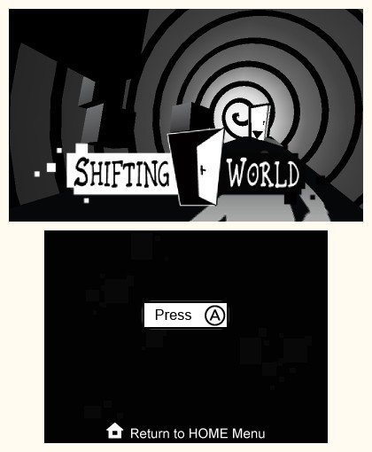 Adaptée par Fishing Cactus, cette version 3DS de SHIFT fait quelque peu évoluer sa formule. Shifting World propose en effet un background un peu plus fourni que les précédentes incarnations. Vous évoluez toujours dans un environnement pour le moins hostile, le concept du jeu étant tout simplement de gagner la sortie du niveau en un seul morceau, mais votre avatar n'est plus le cobaye n°12378, et votre bourreau des puissances supérieurs qui réalisent des expériences scientifiques pour exploiter les capacités mentales des humains. Désormais, le personnage, à l'apparence d'un détective privé, est doté d'un majordome qui n'hésite pas à donner quelques conseils durant la partie, tandis que le grand méchant de l'histoire se nomme le Duc. Il a convié tous ses convives à un étrange rendez-vous qui les a aspiré dans une dimension parallèle. Au fil de la progression, le Duc apparaîtra non pas pour vous aider, mais plutôt pour manier l'ironie !