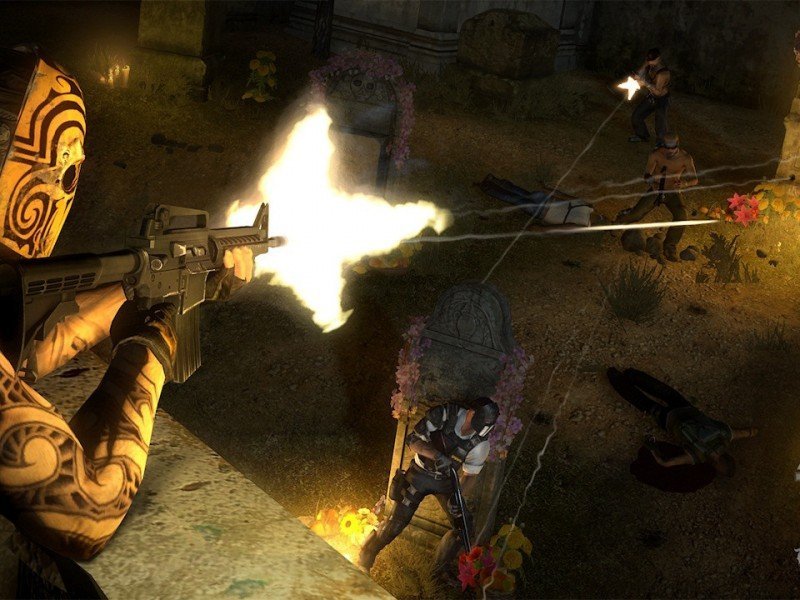 Signé Visceral Games, Army of Two : Le Cartel du Diable met en scène deux nouveaux mercenaires nommés Alpha et Bravo. A l'instar de Tyson Rios et Elliot Salem, ces deux soldats surentraînés devront faire face à des personnes peu recommandables, cette fois au plein cœur du Mexique. Il leur faudra lutter contre un cartel de la drogue dans un scénario bourré de poncifs en tous genre, mais affichant une action en tout cas efficace. Là où Alpha et Bravo passent, c'est le festival pyrotechnique assuré. Les développeurs ont d'ailleurs tout fait pour ce que cela soit le cas, car on trouve une foule d'éléments inflammables dans les décors. L'ambiance du jeu est marquée par des environnements où la coopération sera de mise entre les deux personnages (mur à escalader, courte échelle, etc ..). Le gameplay d'Army of Two peut se résumer en trois phases : se mettre à couvert, tirer dans le tas et se déplacer, ce schéma étant à peu près répété durant tout un niveau. Trop simpliste ? Pas forcément, mais les armes auraient gagné à afficher un plus grand réalisme, car en l'état, on a l'impression d'utiliser des jouets tant la physique n'est pas réaliste, sans compter que la visée est beaucoup trop assistée. Dans le mode Overkill, le héros devient même surpuissant et invincible et peut tout défoncer sur son passage ... temporairement cela va de soi.