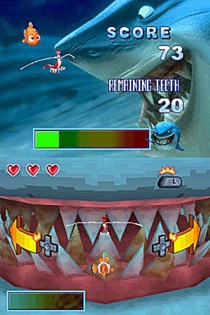 Signé Altron, Le Monde de Nemo : Course vers l'Océan - Édition Spéciale n'est pas à proprement parler une nouveauté, puisque ce titre a précédemment vu le jour en mars 2006 ! Une version DS qui s'inspirait elle-même d'un titre paru sur GameBoy Advance trois ans auparavant. Bref, pour la sortie du film Le Monde de Nemo 3D, Disney a choisi de rééditer un ancien jeu (publié à l'époque par THQ). On retrouve ainsi des séquences extraites du long métrage, et le jeu comporte une trentaine de mini-jeux fort classiques, tirés du scénario du film de Pixar. Il vous faudra ainsi vous échapper de l'aquarium du dentiste et atteindre le récif. Le parcours sera jonché d'obstacles, et vous devrez traverser toute la ville en effectuant des mini-jeux généralement très faciles (le jeu s'adressant avant tout au jeune public). Chaque poisson dispose d'épreuves différentes, faisant un bon usage de l'écran tactile, et chaque étape est ponctuée par un didacticiel illustré sous forme de cinématiques.