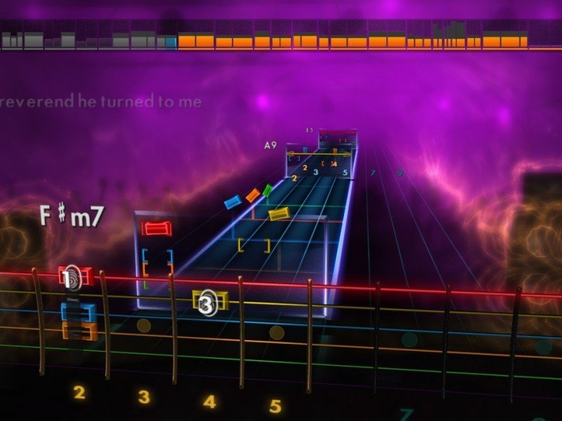 Développé par Ubisoft, Rocksmith Edition 2014 n'est pas un jeu de guitare comme les autres. En effet, contrairement aux autres acteurs du marché, cette production ne requiert pas l'usage d'un instrument en plastique, mais d'une authentique guitare (ou basse). Le jeu débute par un très long tutoriel, destiné à vous expliquer comment vous servir d'un médiator, comment accorder son instrument, et puis enfin comment jouer une note. Dès que la partie débute, on retrouve un fonctionnement assez classique, avec les notes qui défilent vers l'écran, et qui doivent être exécutées au moment précis où elles arrivent sur le manche virtuel de la guitare. Chaque corde est symbolisée par une couleur différente et la ligne horizontale signale que la corde doit être grattée sans toucher au manche. Guitare en main, Rocksmith s'avère très progressif, il est vrai que dans les premiers morceaux vous n'aurez qu'à composer une poignée de notes. Selon votre prestation, le jeu s'adaptera à votre niveau, et meilleur vous serez, plus proche la partition sera de la réalité.