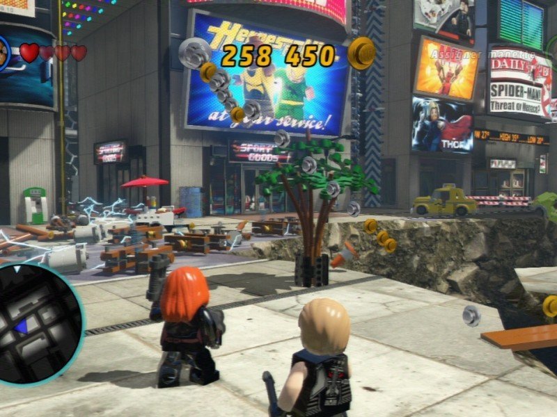 A l'instar de LEGO Batman 2, nous retrouvons un univers ouvert entre chaque mission. A la manière d'un GTA par exemple, vous pourrez librement explorer Manhattan, et accomplir quelques objectifs secondaires. Pour se déplacer, on pourra bien entendu utiliser la flotte de véhicules mis à disposition par le S.H.I.E.L.D, voler dans les cieux quand cela est possible, ou bien se balader à pieds. L'humour est omniprésent et les parodies ne manqueront pas non plus. Notez que l'univers demeure toutefois très bon enfant, une affaire de cible sans aucun doute, les LEGO s'adressant avant tout à un jeune public. PS4 oblige, le titre peut naturellement se jouer directement sur l'écran de la PS Vita, sans la télévision allumée, et profite d'un mode multijoueurs qui peut utiliser un affichage séparé (un joueur sur la TV, l'autre sur la Vita).