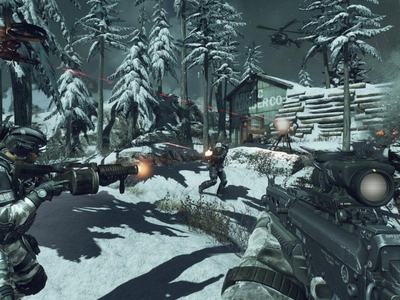 Sur le plan technique, Ghosts s'en sort d'ailleurs assez bien, même si le moteur graphique commence à sérieusement vieillir. Sur PS4, le rendu est d'ailleurs un peu plus fin que sur PS3/X360, et le jeu tourne en 1080p après installation d'un patch. Le lifting graphique demeure cependant assez mince, et aucune modification d'envergure n'a été faite. Notons toutefois qu'il est possible de jouer directement sur la PlayStation Vita en utilisant la fonctionnalité Remote Play, et que le titre ne revient qu'à 9,99€ pour les possesseurs de la version PS3 (un coupon est présent dans le boitier). Chaque époque visitée dispose d'un cadre forcément différent : Les premières missions sont très linéaires, mais au fil des minutes, les niveaux deviennent de plus en plus vastes, et permettent davantage de fantaisies qu'à l'accoutumée. Les personnages sont très expressifs et l'ambiance nous plonge immédiatement dans l'enfer de la guerre. Signalons d'ailleurs que le jeu s'avère moins violent que son prédécesseur Black Ops II (d'où la classification PEGI 16+). En solo, Call of Duty assure une moyenne de cinq heures de jeu, ce qui demeure assez court. Certes, les panoramas sont variés (séquence dans l'espace, visite d'une plage dévastée, virée sous-marine, dans la jungle, etc), mais les séquences d'infiltration sont plutôt ratés. En outre, si Ghosts vous permet de vous déplacer avec un chien (que vous pouvez même diriger directement), l'animal devient rapidement plus gênant que véritablement utile. D'un point de vue général, la campagne manque néanmoins d'intensité, et son scénario ne brille pas par son audace.
