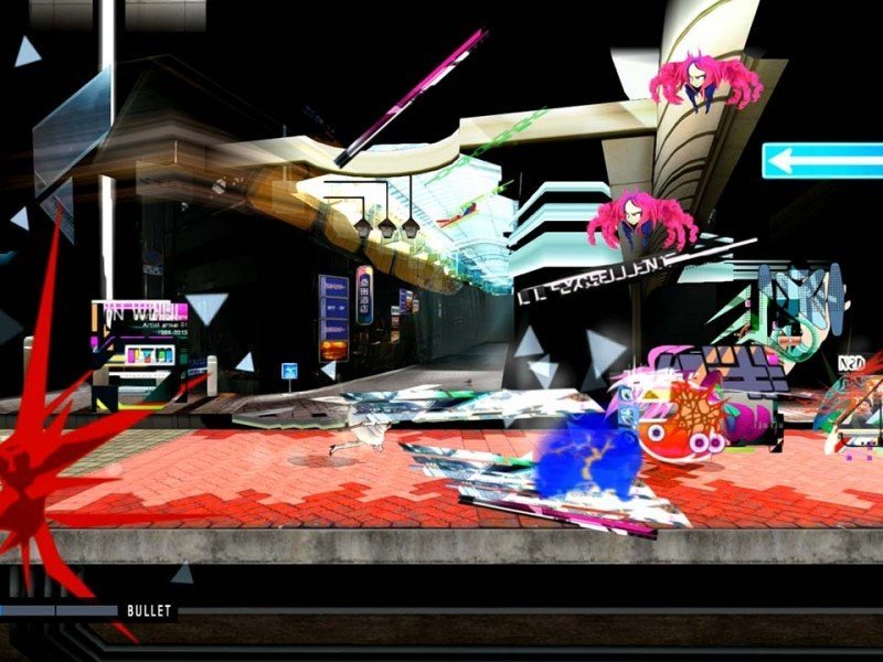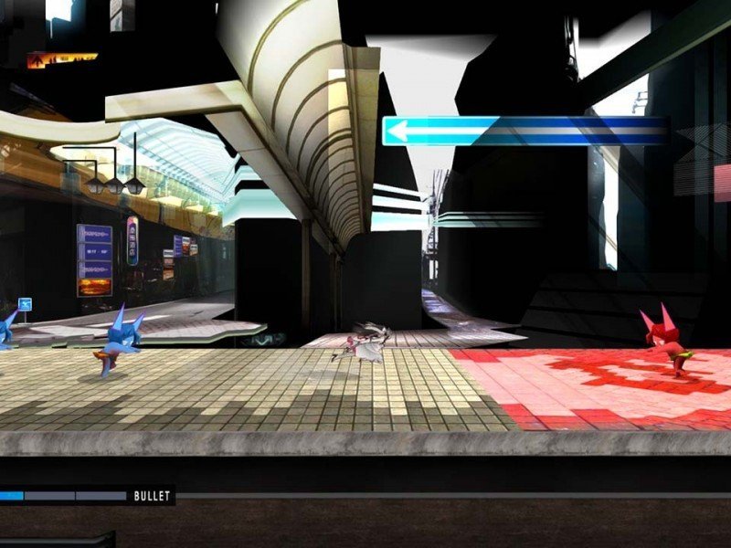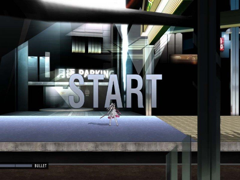 Produit par l'excentrique Suda 51 (Killer 7) , Ranko Tsukigime's Longest Day est donc un jeu d'action 2D où vous incarnez l'héroïne éponyme, unique héritière du conglomérat de l'ombre " Tsukigime Enterprise ". Simple écolière le jour, elle devient un redoutable assassin une fois la nuit tombée. Quand une organisation ennemie menace sa vie et celle de ses amis, elle doit se battre pour survivre. Ce titre fait office de fil rouge vidéo-ludique avec l'anthologie de quatre animes Short Peace de Katsuhiro Otomo. Vous devez faire preuve de réflexes acérés pour gagner la sortie des niveaux, et échapper à tous les ennemis à vos trousses . Ranko devra parcourir une dizaine de niveaux à toute vitesse, tout en tranchant les créatures sur sa route pour gagner des points. Si vous êtes trop lent, une énorme masse verdâtre ne fera qu'une bouchée de la pauvre Ranko. Heureusement, il est possible de les repousser momentanément en leur tirant dessus en pressant L1. Cependant les balles sont limitées à trois, et le chargeur met du temps avant de se restaurer (il est possible de le remplir plus vite en enchaînant les combos).