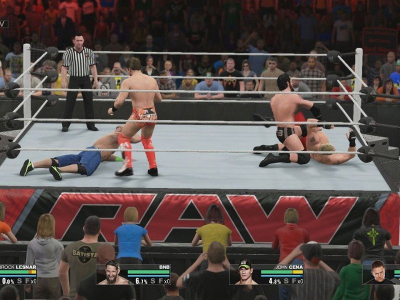 Les férus du genre pourront quant à eux explorer les nouvelles prises disponibles, mais il n'est plus permis de personnaliser l'entrée des catcheurs sur le ring. La bande son est assez correcte dans l'ensemble, et les commentaires de Michael Cole et Jerry Lawler (en V.O.) dynamisent le spectacle. Le système WWE Live permet d'adapter les réactions du public en fonction de ce qui se passe sur le ring, et cela fonctionne plutôt bien. Bon point, les matchs en ligne sont mieux gérés cette année, il y a moins de bugs également, mais le système de partage du contenu est un peu frustrant. PS4 oblige, il est bien sur possible de jouer sur PlayStation Vita via la fonctionnalité Remote Play, et le résultat est assez réussi dans l'ensemble.