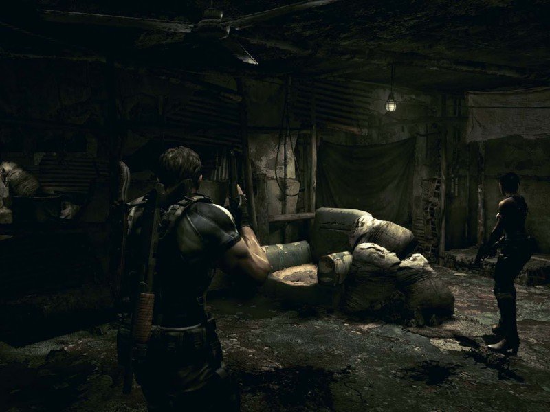Intégralement en 3D temps réel, Resident Evil 5 reprend la même mécanique de jeu que son prédécesseur. La caméra est ainsi collée à l'épaule de votre personnage, et le système est resté figé dans le temps. Vous pouvez tirer n'importe où et la localisation des dégâts est très poussée. Les tirs à la tête sont toujours aussi efficace, et il n'y a pas de censure alors c'est parfois très gore. Enfin méfiez vous quand même, car quelques fois vous pourriez voir de drôles de bêtes sortir du corps des ennemis ....Quand un ennemi est sonné, vous pouvez donner un coup de pied. L'action contextuelle apparaîtra à l'écran. Il est également plus facile de se dégager en cas de contact avec le méchant. Il vous faudra suivre les indications et des écrans fixes vous apprendront au fil de la partie les nouvelles possibilités. A la manière d'un FPS, quand un adversaire est battu, certains items restent au sol. Très souvent ce sera des munitions, quelques fois des herbes, de l'argent ou encore des bijoux. Utile pour décrocher des succès. Vous trouverez également des objets en tous genre dans les maisons ou dans des coins reculées. Pour casser les caisses, il vous suffira de sortir le couteau.