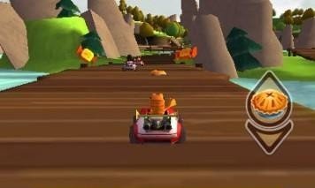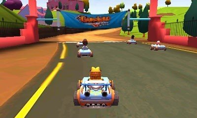 Adapté sur Nintendo 3DS par Most Wanted Entertaiment, Garfield Kart est un jeu de kart qui s'inspire assez nettement de Mario Kart, avec des courses réparties en trois cylindrées, à savoir 50cc, 100cc et 150cc. Toutefois, le contenu est verrouillé en début de partie, et il faudra obligatoirement commencé en 50cc, et débloquer les quatre coupes comportant 16 circuits sur lesquels Garfield, Jon et Odie et les autres vont s'affronter. Outre le mode Grand Prix, on retrouve une option Course unique et du Contre la montre. En revanche, le mode multijoueurs présent sur mobiles n'est cette fois du voyage, un oubli assez gênant dans ce genre de production. Certes, on dénombre beaucoup de contenu à débloquer (personnages, karts, éléments de personnalisations, bonus, etc), mais le titre d'Anuman se veut d'une grande facilité. Non seulement les pièces ramassées sur les circuits permettront d'acquérir des bonus supplémentaires nommés "coups de pouce", mais en plus, il est possible de couper allègrement à travers champ sans que la vitesse de votre kart n'en soit réellement affectée !
