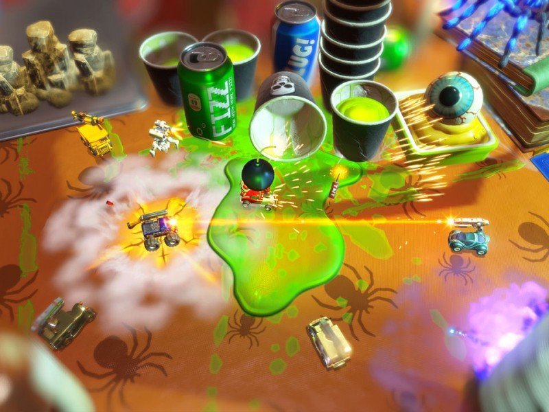 Développé par Codemasters, Micro Machines connu un grand succès sur consoles dans les années 1990, avant de disparaître pendant plus d'une décennie après l'épisode V4. Ce nouvel opus, désormais propulsé par le moteur Unity, tente d'apporter de la nouveauté dans le gameplay. Cela se ressent en particulier dans la prise en main beaucoup plus souple qu'à l'époque (notamment le changement de direction) et par une physique qui évolue en fonction de la catégorie du véhicule utilisée (voiture, tank, camion, etc). Premier bémol à noter, l'absence de mode carrière s'avère fortement préjudiciable pour les joueurs solo, d'autant plus que tous les éléments sont débloqués d'emblée. En multijoueurs, nous retrouvons le classique "Élimination" en local, mode au sein duquel la caméra se focalise sur le leader. Si un concurrent sort du cadre, il est instantanément éliminé. Lorsque l'on sait que des bonus peuvent être ramassés sur la piste (marteau, NERF ou grenade), l'action tourne rapidement au pugilat. Autre mode proposé, la "Bataille" fait évoluer les concurrents au sein d'une arène, là encore les voitures disposent d'arme mais liées au véhicule choisi. Une option de jeu pas vraiment motivante sur la durée, et un mode course classique aurait été plus appréciable, mais il ne s'avère accessible qu'en solo.