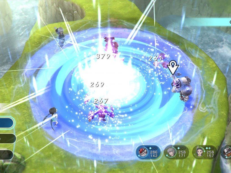La position des personnages aura une importance puisqu'il est possible de frapper plusieurs ennemis simultanément, et il est possible de se déplacer sur l'aire de combat avant de valider son action. La jauge de Momentum progresse durant la bataille et bien utilisée, elle permet d'effectuer deux frappes au lieu d'une. Quant aux Spirites, ils rappellent les Matérias de Final Fantasy XVII et permettent d'attribuer des attaques spéciales aux différents protagonistes. Les Spirites colorés servent pour leur part à améliorer les armes, tandis que des attributs peuvent être assignés aux Momentum pour leur donner des effets supplémentaires. Enfin, durant les joutes, il vous sera possible de capturer des robots Kisou dans les zones ou pendant les combats, puis d'en équiper vos personnages afin d'obtenir des compétences améliorées. Ces Exomechs sont utiles pour voyager plus vite sur la carte (ou emprunter des itinéraires secondaires) ou bien encore asséner des frappes plus puissantes (non pas que les combats de boss soient particulièrement difficiles).