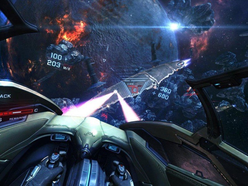 Dans la mythologie nordique, les Valkyries étaient des divinités vierges et pugnaces qui dirigeaient les batailles en semant la mort. Portés par un clin d’œil à leurs racines païennes, les Islandais de CCP games ont concocté EVE: Valkyrie sur PlayStation VR, un titre qui a été construit précisément pour répondre aux fantasmes de ceux qui voudraient piloter des chasseurs dans l'espace, effectuer des tonneaux à 360°, attaquer de grands navires porte-avions et survoler des champs d'astéroïdes, mais sont nés quelques millénaires trop tôt. CCP Games a essayé de capturer l’impression de ce à quoi pourrait ressembler ce jeu de tir en réalité virtuelle, et pour l’essentiel, cela fonctionne très bien. Vous commencerez par quelques courtes missions en mode solo qui vous donneront des informations de base. Vous êtes essentiellement le clone d'un pilote mort depuis longtemps, ressuscité par un autre clone qui a volé à vos côtés. Votre nouvelle vie vous voit dans les services du groupe de pirates connu sous le nom de Valkyrie, pour qui vous allez mener des missions. Ces missions se retrouve dans la partie solo, bien qu'elle soit principalement configurée pour vous aider à vous préparer pour l’arène en ligne. Bonne nouvelle, même lorsque vous volez à différentes vitesses, vous ne ressentirez pas la redoutable "motion sickness" (l'effet de nausée) que certains jeux de réalité virtuelle peuvent donner. Cela apparait naturellement de se déplacer dans un espace de 360 ??degrés tout en cherchant à repérer les ennemis.