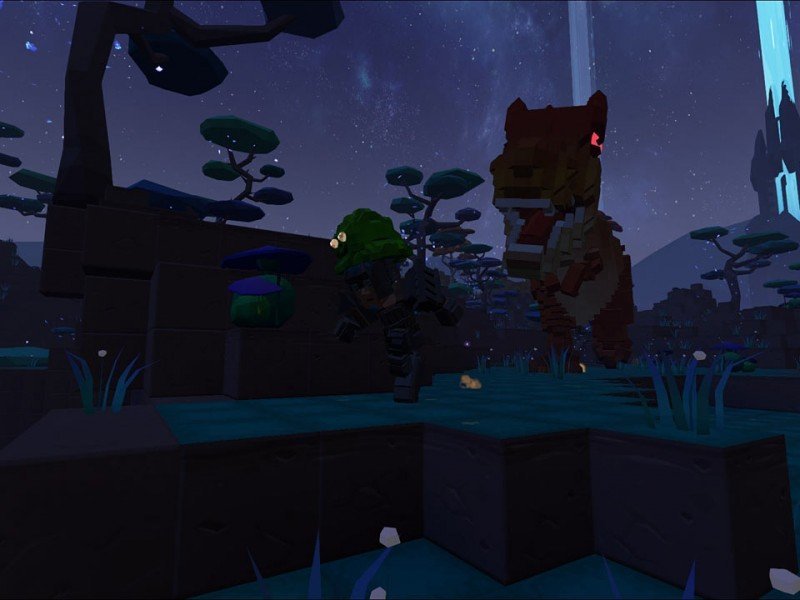 PixARK entre dans la mêlée comme un jeu qui tente de conquérir de multiples publics. Comme son nom l'indique, c'est une version "pixel" de ARK : Survival Evolved, un jeu où les joueurs peuvent monter des dinosaures et installer des lance-roquettes sur des dragons. ARK avait un certain attrait parce qu'il utilisait des mécaniques de survie, de la fantaisie, de la science-fiction et de l'artisanat. Tandis que le jeu ARK plonge davantage dans le combat et les rencontres à grande échelle de raids de base que Minecraft, le jeu conservait l'artisanat et la survie comme moteur. L'objectif de PixARK est d'étendre la portée de la licence ARK et de ses mécanismes en les plaçant dans quelque chose qu'un large public peut apprécier et auquel il peut s'accrocher. Ceci est immédiatement évident dans l'utilisation de voxels par Snail Games pour construire chaque monde généré au hasard et ses habitants. Ce faisant, l'expérience de survie fondamentale de PixARK est beaucoup plus douce que celle de son frère "réaliste". Les joueurs qui étaient pourchassés par n'importe quelle créature assoiffée de sang devaient s'enfuir sur un terrain solide en espérant trouver un terrain plus élevé ou une meilleure méthode de retraite. Dans PixARK, le terrain peut littéralement être modifié, détruit et construit pour créer un refuge sûr impromptu.
