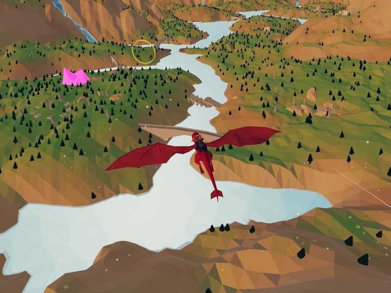 Sur le plan graphique, Ayre and the Crystal Comet arbore une structure low-poly qui tente d'évoquer - de manière assez inefficace - quelques classiques du passé. Malgré un monde ouvert assez généreux, les détails esthétiques sont résolument pauvres et très (trop) discrets par rapport aux standards d'aujourd'hui. En bref, ceux qui cherchent un jeu dans lequel ils pourront survoler un paysage aussi vaste que détaillé seront cruellement déçus. Et cette déception n'est pas seulement alimentée par la pauvreté polygonale évoquée plus haut, mais aussi par un manque de variété esthétique et un recyclage excessif de certains éléments (trivialement, les arbres sont tous les mêmes en plus d'être esthétiquement discutables). A vrai dire, les vues agréables ne manquent pas, surtout si l'on conserve une altitude particulièrement élevée. On peut alors profiter d'une palette de couleurs assez variée qui s'épuise brutalement au fur et à mesure que l'on descend en altitude. Les graphismes ne s'améliorent guère lorsqu'on se concentre sur les deux protagonistes. Ayre, et surtout son dragon, font un usage discret du low poly mais restent encore loin de la moyenne des titres actuels. Certaines animations sont également discutables, notamment celles du protagoniste, qui sont en bois et peu crédibles. Décidément meilleure, l'attention portée à notre ami dragon qui, notamment en vol, offre des retours assez agréables. Le son est en accord avec la philosophie du titre, offrant des pistes relaxantes, peu mémorables mais jamais agaçantes ou déplacées - bien qu'inévitablement répétitives. A noter la présence de sous-titres en français (bien qu'il faille les régler manuellement à chaque fois que l'on entre et sort du jeu), alors que le doublage est totalement absent (la narration se fait uniquement par le biais de bulles et de texte à l'écran).