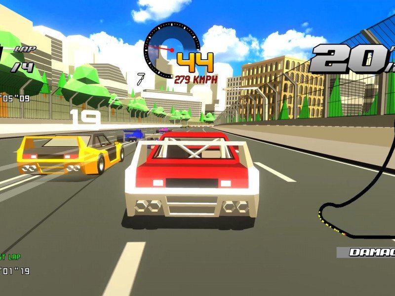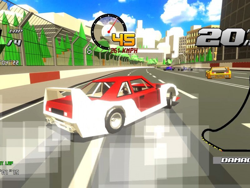 Chaque compétition à laquelle nous participons possède une difficulté qui peut être réglée sur trois niveaux : facile, intermédiaire et difficile. Si, en facile, l'IA sera plutôt médiocre, en intermédiaire, elle nous donnera déjà beaucoup de fil à retordre. En difficile, il faudra être parfait et très rapide pour ne pas perdre beaucoup de positions, très rapidement. De plus, l'IA est, comme dans les jeux d'arcade d'antan, très injuste et sujette aux accidents. Il ne sera pas difficile de se faire percuter au hasard, mais il est tout aussi agréable d'assister à des batailles (et des crashs) entre voitures adverses, un peu comme dans Wreckfest. Les graphismes Low Poly sont les mêmes que ceux du chapitre précédent, avec tout en basse définition mais avec un style distinctif. Des couleurs très saturées, presque fluorescentes, entourent tout le jeu et sont particulièrement évidentes dans les livrées des voitures. Certaines sont si intenses qu'elles émettent presque leur propre lumière. Les décors des différents circuits du monde, 18 au total, sont agréables et bien réalisés. Par exemple, à Londres, on peut voir le parlement et Big Ben, à Rome, le Colisée et à Tokyo, les gratte-ciel. Les autres pistes ne sont pas particulièrement caractéristiques, mais ont leur propre charme.