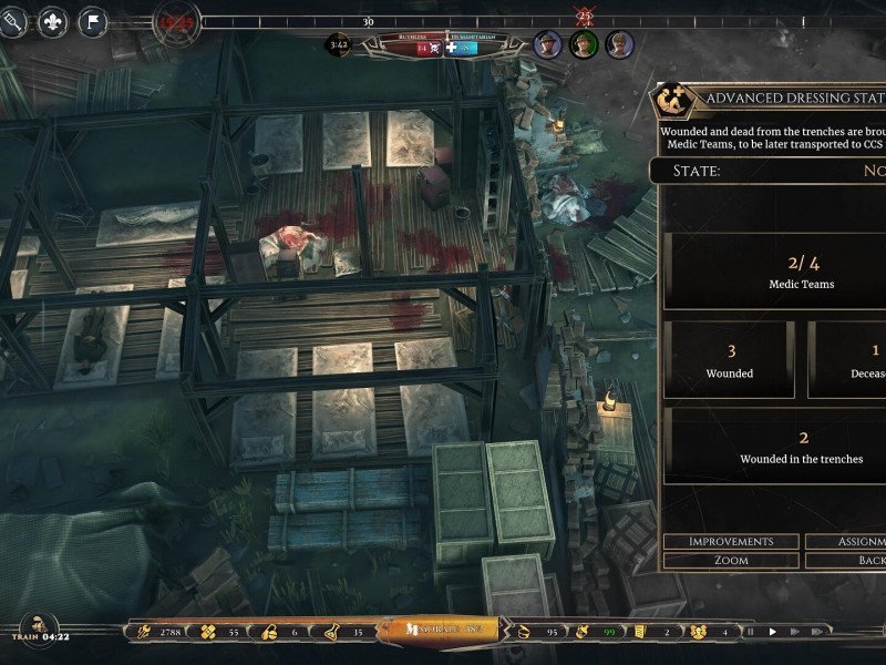 War Hospital se déroule dans une époque très précise : nous sommes en 1918, nous sommes en Angleterre et la Première Guerre mondiale fait rage. La Grande Guerre a fait des victimes dans toutes les régions d'Europe et nous nous retrouvons dans le rôle du major Henry Wells , un médecin de guerre aujourd'hui à la retraite, rappelé pour gérer un hôpital de campagne. Il va sans dire que les ressources ne sont certainement pas abondantes et que le monde auquel vous aurez affaire ressemblera plus à l’enfer que vous ne pouvez l’imaginer. Si, habituellement, dans les jeux de guerre, vous êtes appelé à jouer le rôle du bourreau, ici vous devrez sauver des vies, chaque vie sauvée aidera non seulement la cause mais permettra à une personne de rentrer chez elle dans sa famille. Nous souhaitons dire quelques mots justement sur cet aspect « humain » de War Hospital : chaque soldat qui entrera dans votre hôpital de campagne n'aura pas seulement des blessures ou des blessures, il aura aussi son propre parcours, sa propre histoire, sa propre vie au-delà du guerre. L'idée d'humaniser les soldats qui franchiront la frontière de votre structure est impactante et vous placera, à chaque fois, avec une grande responsabilité quant aux décisions que vous aurez à prendre car, d'un autre côté, War Hospital est un jeu de lequel le joueur est appelé principalement à prendre des décisions. Avant de vous parler du gameplay, nous aimerions vous rappeler que War Hospital est localisé en français et que la traduction est également bien faite.