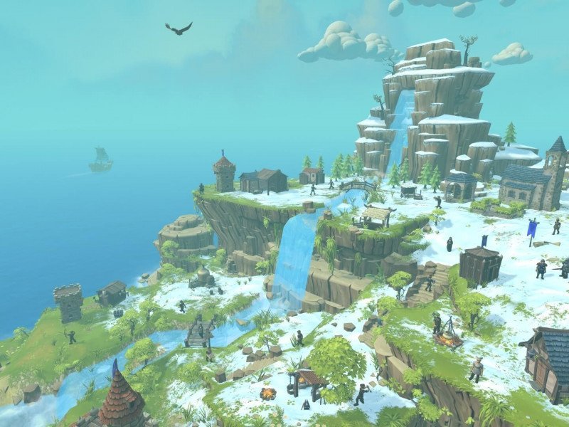 Dans Townsmen VR, vous êtes le patron d'une colonie sur une île déserte. Il est de votre devoir de confier des tâches à chacun. Qui cuisinera, chassera ou construira ? De combien de personnes de chaque type avez-vous besoin ? Townsmen VR vous permet de surveiller l'île comme une sorte de Dieu. Sous la direction de Sir Clunkalot, vous apprendrez les bases, après quoi vous serez très libre dans la manière dont vous souhaitez aborder les pièces. De quoi voulez-vous vous occuper en premier sur l’île ? La nourriture et l’eau sont de toute façon importantes, mais comment construire les bâtiments pour ces composants ? Vous commencez avec des ressources limitées et vous ne pouvez pas construire tout ce que vous voulez. Vos « pouvoirs » impliquent de nombreuses responsabilités. Vous pouvez également récupérer les résidents et les déposer quelque part. Alors avez-vous besoin d’un constructeur de l’autre côté de l’île ? Vous n’avez alors pas besoin d’attendre qu’il emprunte ce chemin tout seul. Il faut juste faire attention à l'endroit où on les soulève, car si on les lâche mal, par exemple au-dessus de la mer, ils peuvent aussi se noyer. Le jeu propose plusieurs options de jeu. Vous pouvez suivre l'histoire ou vous lancer vous-même dans un bac à sable. Nous avons commencé à suivre l'histoire depuis le début car nous n'aurions pas pu comprendre les commandes sans le didacticiel. Bien que cela soit relativement simple, vous devez savoir exactement à quoi sert tout pour pouvoir gérer facilement votre règlement. Après avoir joué les trois premiers niveaux, vous avez tout appris et vous pouvez faire ce que vous voulez. Alors essayez aussi le bac à sable, par exemple.