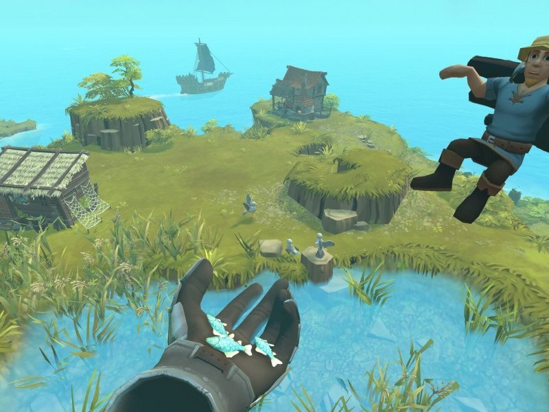 Si vous continuez à suivre l’histoire, ce sera amusant de voir comment vous en débloquerez de plus en plus. Non seulement en termes de bâtiments, mais aussi du type d'animaux qui vivent sur les îles. Différents personnages veulent différents types de viande/poisson, vous devez donc en tenir compte. Si les ouvriers sont trop lents pour vous, vous pouvez également leur donner un coup de main. Placez des matériaux dans les nouveaux bâtiments, secouez les poules pour obtenir des œufs plus rapides et bien plus encore. Vous serez également dérangé à plusieurs reprises par des pirates et des commerçants qui vous rendront la vie misérable. Les pirates vous attaqueront pour voler les ressources, tandis que les commerçants factureront trop cher les ressources importantes (tout comme de nombreuses entreprises réelles). Pour protéger vos biens, vous pouvez également recruter des soldats à un moment donné. Ces personnages sont en dehors de vos habitants, donc aucune tâche n'est perdue en mettant en place davantage de défenses. L’image globale offre une profondeur surprenante et le gameplay lui-même s’intègre parfaitement dans la réalité virtuelle. Il se joue en fait mieux qu'un jeu similaire sur PC ou smartphone. À condition que les contrôles continuent de fonctionner.