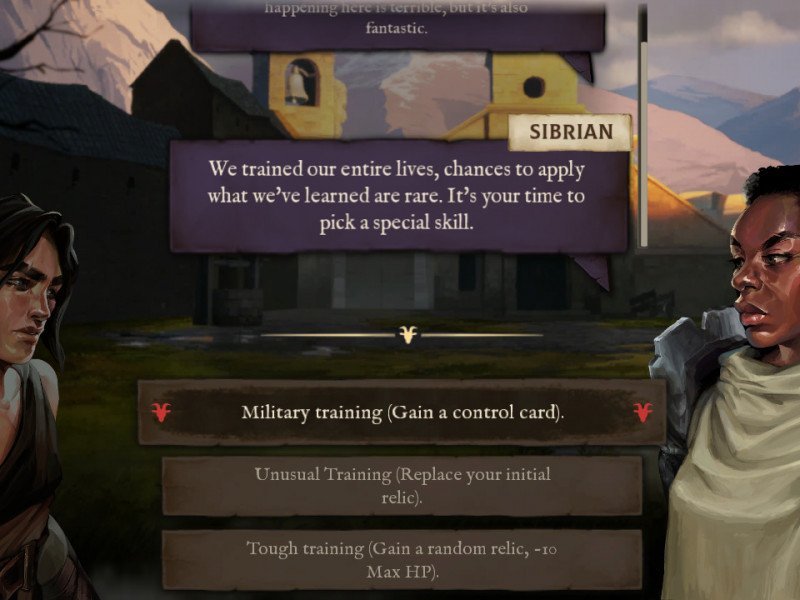 Le récit est divisé en trois types de rencontres : narrative, exploratoire et combat. Votre choix alternera donc entre le développement de l'intrigue et la dynamique entre les personnages, dans le but de favoriser le développement de votre configuration et l'évolution de votre deck ou personnage. Chaque décision ouvre donc des chemins variés qui pourraient conduire à des affrontements, des plus simples aux plus complexes, nécessitant une attention et une stratégie constantes. L'arbre de progression est également non linéaire , ce qui rend le jeu plus dynamique, étant donné qu'il se façonnera en fonction de vos choix et de vos résultats. Grâce à ces décisions, vous obtiendrez des récompenses qui faciliteront votre aventure : plus d'Arcanium (monnaie du jeu), de nouvelles cartes, des améliorations pour certaines cartes, de nouvelles reliques ou encore la possibilité de supprimer ou de doubler certaines cartes déjà présentes dans votre deck. Enfin, pour être plus accessible et faciliter la progression, les développeurs ont choisi de conserver tout l'Arcanium obtenu à chaque "run", et ensuite en l'amenant à la Forge de l'Enfer il sera possible de créer et d'obtenir de nouvelles cartes à ajouter au pont de départ. La dernière note positive, mais non la moindre, concerne le secteur artistique. La bande-son est excellente et bien construite , créant l'immersion nécessaire pour un jeu qui offre du danger dans n'importe quel choix, qu'il s'agisse d'un simple voyage vers une tour abandonnée ou simplement d'affronter un loup furieux. En ce qui concerne les graphismes, cependant, ils sont raffinés et détaillés , avec un style artistique qui se distingue par son design coloré et vivant, qui mélange de manière optimale le réalisme avec les coups de pinceau de couleur. Les personnages et les environnements sont soigneusement conçus, pour plonger encore plus le joueur dans un monde fantastique riche et engageant.