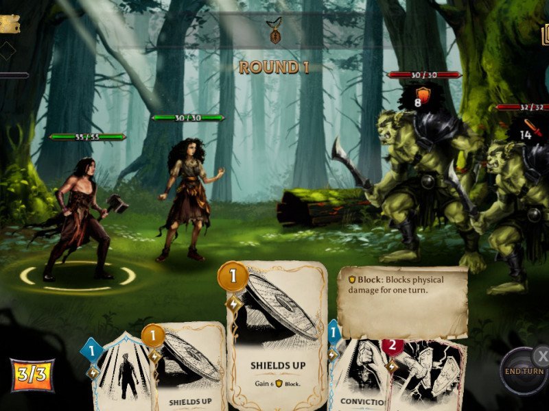 Les développeurs ont réussi à très bien travailler sur le gameplay, en équilibrant les styles des cartes disponibles et les constructions que vous pouvez construire pour le protagoniste. Ruff Ghanor est loin d'être un jeu facile, même s'il parvient néanmoins à être accessible et amusant, offrant également diverses options de combat offertes par les différents types de cartes. Les règles sont simples : avec une main initiale de cinq cartes et trois Points d'Action par tour, vous serez prêt à partir à la recherche du Dragon Zamir. Les points d'action dont vous disposez seront dépensés en fonction de la carte que vous souhaitez utiliser . En effet, chaque carte a un Coût d'Action et un type , facilement identifiables grâce à leurs couleurs (Attaque est rouge, Contrôle est jaune et Prière est bleue). De plus, vous disposerez également d'une petite zone de texte qui indique précisément l'effet de la carte. Enfin, l'interface de jeu vous donnera également diverses informations utiles qui vous aideront à prédire les jeux de vos adversaires , afin de mieux planifier vos mouvements. En plus des cartes, vous aurez également à votre disposition jusqu'à trois Miracles, qui fonctionnent exactement comme les capacités du jeune clerc. Vous pouvez les utiliser lorsque vous parvenez à accumuler suffisamment de points de foi.