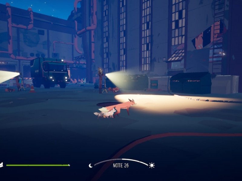 L'exploration est un élément extrêmement important de tout l'écosystème du jeu. Le joueur doit voyager non seulement pour effectuer les actions décrites ci-dessus, mais aussi pour assister à des événements et améliorer les capacités des enfants. Les premiers sont des moments individuels où quelque chose de spécial se produit, comme la présence d'un enfant humain gentil, ou d'un animal à secourir. La seconde est une récompense pour la découverte et la curiosité, ce qui permet de développer des compétences uniques pour chaque louveteau de l'équipe. Pour être juste, il n'est pas obligatoire de débloquer chaque amélioration, mais elles vous permettront, par exemple, d'atteindre des aliments autrement inaccessibles. Les mécanismes des nuits ne sont cependant pas une fin en soi, car le gameplay change avec le temps. Les différentes tâches doivent éventuellement être achevées avant la tombée de la nuit. La pénalité n'est pas liée à une mort immédiate, mais plutôt à la présence accrue d'ennemis dans l'univers du jeu. Une caractéristique qui donne au joueur un sentiment supplémentaire de danger, créant une aura supplémentaire d'importance à la routine de survie des renards. Une petite touche sympathique est l'aperçu de la tanière, présent à la fin de chaque nuit. À certains moments, l'œuvre permet de voir de près la mère et ses petits en train de dormir, peut-être entourés de quelques jouets trouvés sur place. Cela réussit à augmenter encore le degré d'affection que le joueur ressent pour les protagonistes, au point d'arrêter un monde qui semble avoir oublié la douceur et la compréhension des autres.