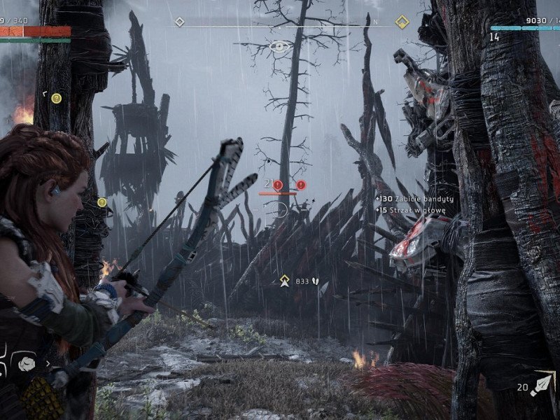 La jouabilité est également très intéressante, offrant des mécaniques de combat et de chasse extrêmement engageantes. Afin de battre les monstres qui sillonnent les plaines, il faudra observer ces créatures pour connaître leur point faible. Cela s'accomplit avec un gadget qu'Aloy porte à l'oreille et qui lui permet d’avoir accès à la réalité augmentée. L'interface précise les points spécifiques sur la créature qui lui feront plus de dégâts. Vous pourrez aussi approcher les créatures de manière furtive, les pister pour connaître leurs habitudes, voire même les pirater (soit pour qu'elles attaquent à votre place, soit pour les utiliser comme monture). L'intelligence artificielle "mécanique" ne manque pas de répondant, celle des ennemis humains est beaucoup moins crédible hélas car un script limite la distance de leurs réactions. En vous éloignant de la cible, ils vous auront déjà oublié. De nombreuses missions secondaires sont bien sur de la partie, notamment pour éclairer le rôle d'Aloy dans cette odyssée, de quoi faire grimper la durée de vie à près de cinquante heures. L'ambiance musicale, très tribale pendant les combats, vient donner un rythme encore plus dynamique. Les doublages français signent également un sans faute. Horizon Zero Dawn Remastered propose trois modes de performances : qualité, à 30 FPS, un mode balance, qui fonctionne à 40 FPS sur les écrans compatibles VRR, et un mode performance, qui offre 60 FPS. Chacun d'eux permet d'apprécier le jeu de différentes manières, en mettant l'accent sur les détails visuels ou la fluidité des mouvements.
