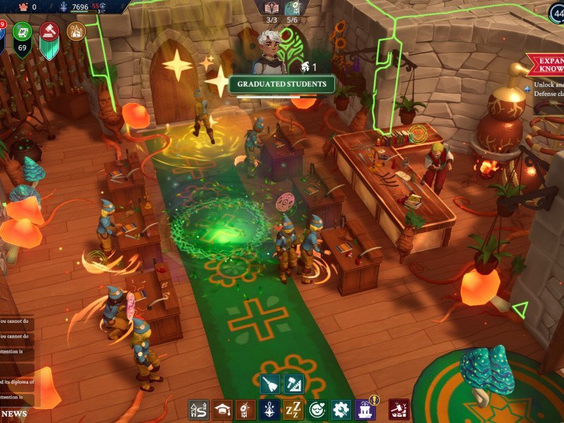 Vous serez régulièrement confronté à des pénuries de mana. Par conséquent, vous devrez fermer des classes pour permettre aux autres de continuer. En parallèle, vous devrez également gérer l'or que vos élèves vous versent. Vous l'utiliserez pour embaucher des professeurs et construire de nouveaux bâtiments. Il faut être prudent, surtout au début du jeu. Les pénuries de mana sont fréquentes et vous n'avez pas autant d'or que vous le souhaiteriez, sans parler des autres ressources nécessaires. Vous aurez du mal à recruter des professeurs et à chasser les créatures magiques, surtout au début. Heureusement, vous pouvez stocker tout ce dont vous avez besoin, mais cela ralentit votre progression et complique encore plus la recherche des bonnes personnes. Et si les pénuries de mana sont censées augmenter la difficulté, elles compliquent surtout la gestion de votre école. On se demande parfois pourquoi c'est si compliqué. Entre-temps, vous bénéficiez également des avancées technologiques acquises grâce à l'éducation. Vous pouvez presque tout améliorer, mais c'est peut-être là le problème, car vous n'avez pas immédiatement une idée de ce que ces améliorations vous apporteront, ni de ce qu'elles pourraient vous coûter. Une fois que vous aurez progressé, vous pourrez commencer à explorer votre monde. Vous pourrez ainsi découvrir des villages, des grottes et même visiter une académie rivale.
