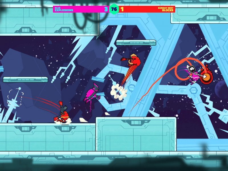 Dunk Dunk est un jeu taillé pour le multijoueur. Que vous jouiez avec un ami ou en équipe adverse, plus il y a de joueurs, mieux c'est. Il existe des modes quasi-solo (contre l'IA) et des modes imitant une carrière (ou plutôt, gagnant en popularité au fil des matchs), mais malheureusement, le jeu est loin d'être à la hauteur de la norme à cet égard. Le contenu est encore trop réduit et débloquer le tournoi ne change pas grand-chose. En gros, le résultat est toujours le même. Il faut aussi savoir que le réservoir s'épuisera beaucoup plus vite en solo. Le clou dans ce cercueil est peut être l'absence de jeu en ligne. On est obligé de jouer devant un seul écran, ce qui limite nos options et est difficile à accepter de nos jours. Les terrains et plateaux sont variables, ce qui nécessite parfois de s'adapter aux tremplins et autres obstacles omniprésents. Mais quelle différence cela fait-il ? Vous pratiquerez toujours un sport limité, avec des commandes et des options d'action tout aussi limitées. Cela étant, le mode quatre joueurs est addictif et les mécaniques de jeu sont assez simples à utiliser.