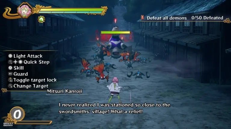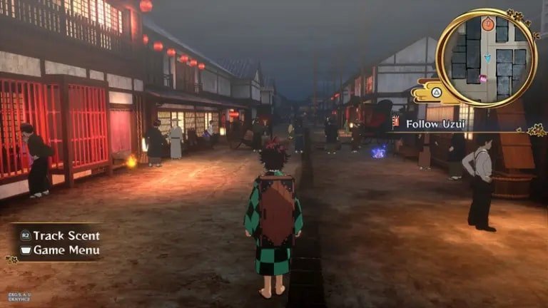 Comme dans le premier jeu, le mode Histoire est divisé en chapitres séquentiels, chacun proposant exploration et combat. Dans le premier jeu, nous avions déploré plusieurs problèmes, comme des animations lentes et des combats chronophages contre des démons de bas étage. Enfin, dans ce deuxième volet, CyberConnect2 a écouté les critiques des joueurs et a légèrement amélioré le gameplay de ce mode. Les déplacements des personnages en exploration sont beaucoup plus fluides et rapides, grâce à un bouton de course qui accélère les déplacements. De plus, il existe également une nouvelle fonctionnalité appelée Crowd Battle où lorsque Tanjiro rencontre un grand nombre de petits démons, la bataille passe en fait à Action Hack-and-Slash, ce n'est donc pas un combat en tête-à-tête comme combattre un personnage boss. Ce deuxième volet propose également des variantes de gameplay sous forme de mini-jeux, comme jouer du shamisen, un instrument traditionnel japonais en forme de guitare ou de banjo, mais à trois cordes pincées. Ces mini-jeux supplémentaires vous évitent de devoir constamment explorer ou combattre en mode Histoire. Les mini-jeux sont généralement divisés en trois niveaux de difficulté : Débutant, Intermédiaire et Avancé . Vous devrez appuyer sur les boutons qui apparaissent à l'écran, tels que le carré, le triangle, la croix et le O. Parfois, deux de ces boutons apparaîtront simultanément, nécessitant d'appuyer dessus simultanément. Si vous connaissez les jeux de rythme comme Hatsune Miku, Persona Dancing ou le mini-jeu de karaoké Like a Dragon , terminer ce mini-jeu est relativement facile. Cependant, pour obtenir la note S, vous devrez obtenir un score supérieur aux quatre lignes des paramètres ci-dessus. Ce jeu reprend le système de combat perfectionné du premier opus. Les combats se déroulent en deux contre deux : un personnage est activement engagé dans l'arène, tandis que l'autre joue le rôle d'assistant. Vous pouvez échanger les rôles avec le second personnage pendant le combat, mais les deux partagent la même barre de vie. Ainsi, si l'un des personnages tombe, la manche est terminée.