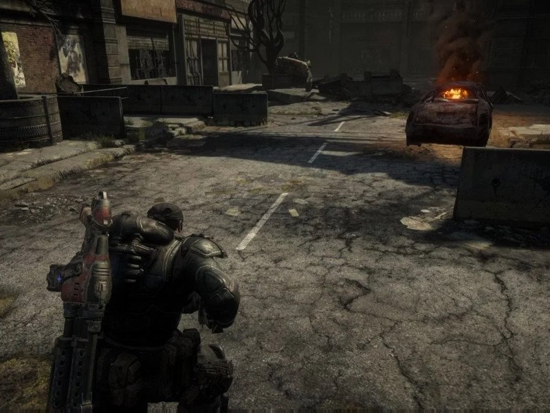 Le gameplay de Gears of War peut se résumer en trois phases : se mettre à couvert, tirer dans le tas et se déplacer, ce schéma étant à peu près répété durant tout un niveau. Trop simpliste ? Pas forcément. Déjà, le héros dispose de quatre armes à utiliser à bon escient : son pistolet standard ; un shotgun ; des grenades à envoyer, leur trajectoire et leur point de chute étant mise en évidence par une courbe à l'écran ; et enfin le fusil d'assaut faisant également office de tronçonneuse au corps-à-corps, avec le bel effet sanglant que cela occasionne venant même tacher la caméra au passage. Tout cela est violent, rythmé, et défoulant. En tout cas l'immersion est de mise, grâce aux somptueux graphismes et à l'ambiance sonore d'une part, mais aussi grâce à l'absence totale de HUD (sauf lors de la visée) et aux effets de caméra. Nous suivons les tribulations de Marcus grâce à une vue au dessus de l'épaule à la Resident Evil 4, mais cette caméra bouge et tremble comme si vous étiez suivi par un cameraman de CNN. C'est encore plus flagrant lorsque le personnage court, où l'on a vraiment l'impression de suivre un soldat à la télé durant une guérilla n'épargnant personne, même pas les caméras. Tout le monde sait que Gears of War a révolutionné le genre du jeu de tir à la troisième personne grâce à son système de couverture. À l'époque, c'était une approche inédite des combats : une approche dynamique et cinématique , qui permettait au joueur de contrôler l'espace et de vivre des combats avec un réalisme et une tension sans précédent.