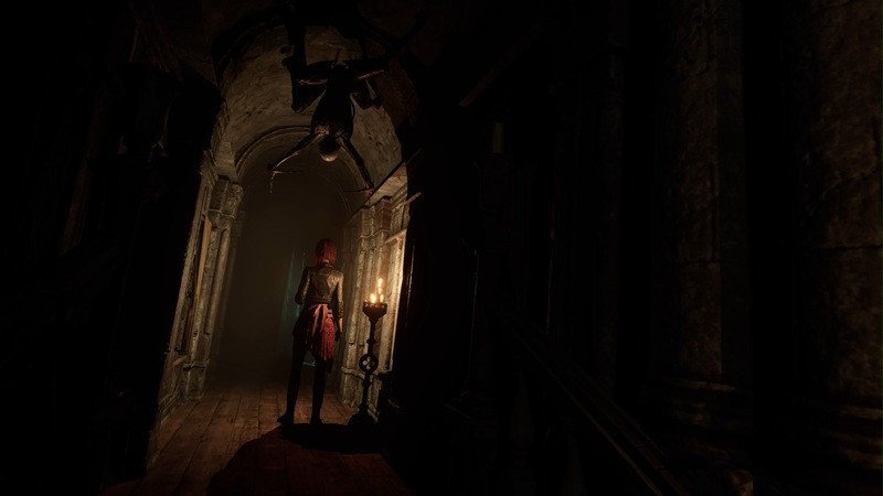 Comme Caroline n'est pas membre des forces spéciales de la police, son arsenal est assez différent. Au début du jeu, vous serez armé d'un pistolet à clous et d'un pied-de-biche, mais vous découvrirez plus tard un fusil à pompe artisanal et diverses autres armes uniques. Chaque arme peut être améliorée en trouvant des pièces pour augmenter sa cadence de tir ou le nombre de balles qu'elle peut tirer avant de recharger. Avec sa tenue et son cache-œil saisissants, Caroline ressemble au personnage principal des films d'horreur, souvent surnommé « La Dernière Fille ». Une autre différence dans ce jeu est que vous disposez d'un briquet doté d'une énergie illimitée, comme par magie. Il est donc essentiel de toujours l'avoir sur vous lorsque vous explorez la Villa Hess. En effet, si vous entrez accidentellement dans une pièce plongée dans le noir complet et n'allumez pas le briquet, Caroline mourra en quelques secondes. Vous devrez donc recommencer le voyage précédent en vous souvenant des pièces, des objets et des énigmes que vous avez résolus. Parfois, dans certains endroits plongés dans le noir complet, des ennemis sont prêts à vous tendre une embuscade ; vous devrez donc reculer pour trouver un endroit avec une source de lumière naturelle afin de remplacer le briquet par une arme et vaincre les ennemis. Heureusement, vers la fin du jeu, vous trouverez une lampe torche qui s'attache automatiquement à l'épaule de Caroline, vous évitant ainsi d'avoir un briquet pour vous déplacer dans des lieux plongés dans l'obscurité totale et vous permettant d'avoir toujours une arme à portée de main. Cependant, vous devrez d'abord trouver la lampe torche et ses piles, qui, comme par magie, durent jusqu'à la fin du jeu, vous évitant ainsi de les remplacer au bout d'un moment, comme dans Outlast ou Alan Wake. Certains lieux sont équipés de chandeliers que vous pouvez allumer avec un briquet, vous permettant d'explorer les lieux arme prête. Il est vrai que le système d'éclairage de Tormented Souls 2 est exquis, car votre visibilité est assez limitée, ce qui donne souvent l'impression que tout est plongé dans le noir complet. Cela crée une atmosphère tendue, complétée par des bruits de fond quelque peu saisissants, vous obligeant à vous arrêter et à viser, vous demandant s'il s'agit d'un simple bruit ou s'il y a réellement un ennemi dans l'obscurité, prêt à attaquer.