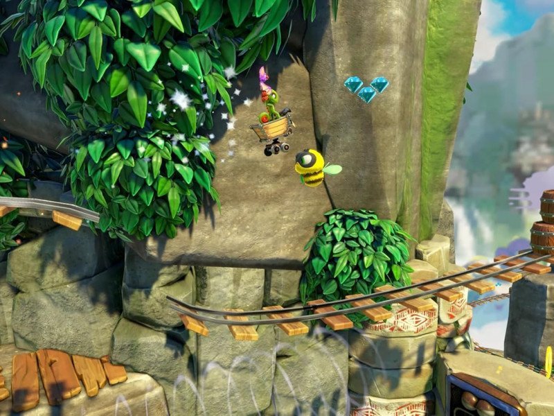 L'une des principales exigences de tout jeu remasterisé est une refonte visuelle, améliorant significativement l'original. Playtonic Games a entièrement repensé les graphismes, rendant l'univers beaucoup plus vivant, du mouvement de l'herbe ondulante à un éclairage plus naturel, en passant par une interface intuitive. De plus, le design des personnages a été peaufiné pour atteindre un niveau de détail bien plus élevé, même si le moteur utilisé est toujours le même (à savoir Unity). La progression comporte encore des défauts de design évidents avec la présence de murs invisibles vous bloquant le passage, ou parfois des endroits à peine visibles à l'écran. De quoi rendre l'exploration un brin frustrante, malgré le fait que la gestion de la caméra apparaisse plus fluide que dans l'original. La prise en main apparaît pour sa part très classique et certains joueurs se diront que le gameplay a terriblement vieilli depuis Banjo Tooie (paru en 2000). Yooka peut avaler des boules qui lui confèrent des pouvoirs temporaires (lancer de l'eau, jeter de la glace ou encore cracher du feu). Le bémol est que cette magie est vraiment très limitée, et pourtant elle sera nécessaire pour compléter certains défis. L'un des aspects les plus marquants de cette version remasterisée est sa bande-son signée David Wise (Donkey Kong Country) magnifiquement interprétée par l'Orchestre Philharmonique de Prague. La conception sonore ajoute du charme à l'univers et le rend plus vivant. C'est un point positif, car les jeux de plateforme ont besoin d'une bonne musique pour créer une atmosphère joyeuse. Cependant, certains effets sonores paraissent parfois désuets, souvent éclipsés par la grandeur de la musique.