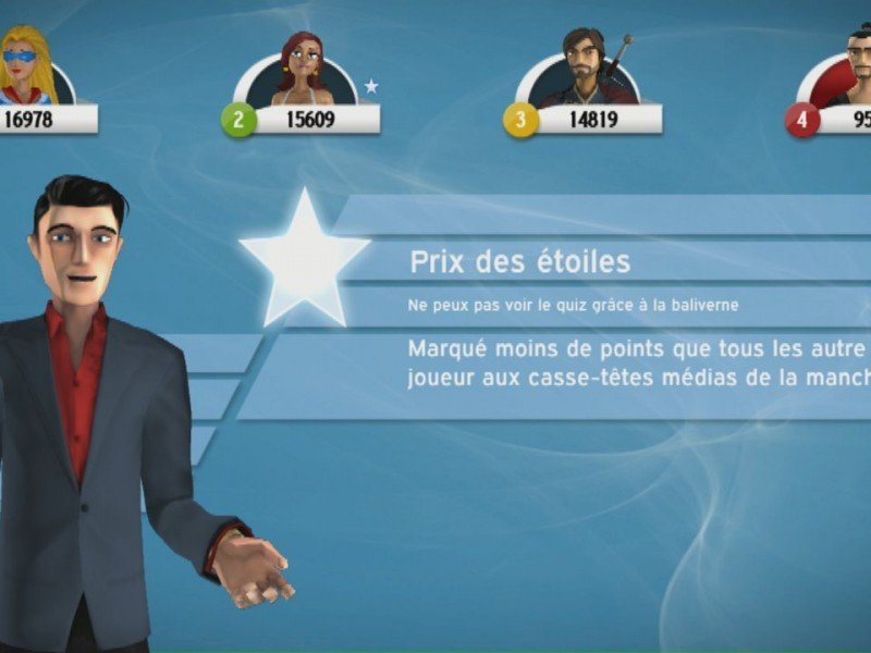 Scene It ? Lumières ! Action ! est un quizz qui s'attaque au cinéma majoritairement Hollywoodien, même si on dénombre également quelques références Françaises, surtout les grands films à vrai dire. Une fois lancée dans la partie, des questions apparaissent à l'écran et vous devez y répondre le plus rapidement possible. Comme d'habitude dans ce genre de jeu, on vous proposera de trouver la bonne réponse, de compléter l'énoncé ou bien reconnaître un thème ou une photo. Mais il faut ici parfois découvrir un personnage flouté ou dissimuler derrière un morphing ou au contraire gommer de l'image. Il est à noter que la localisation du jeu est assez efficace. Autant dire que les parties vont vite s'accélérer, surtout que Scene It ! est compatible avec les buzzers de la série Buzz sur PS3. Côté technique, c'est très basique graphiquement, et le rendu global manque de finesse. La qualité vidéo des extraits de films présentés n'est pas toujours parfaite, qui plus est. La jouabilité est excellente, il suffira juste d'appuyer sur des boutons. La durée de vie est à la hauteur en multi-joueurs avec pléthore de questions (2800). Seul vous risquez cependant de vous ennuyerez rapidement.