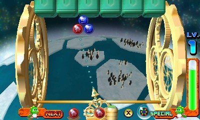 Créée il y a plus de quinze ans, la série des Bobble a accueilli depuis une kyrielle d'épisodes, tous supports confondus. Cette nouvelle déclinaison 3DS fait dans le grand classicisme et met à nouveau en scène les dragons Bub et Bob, plongés dans une aventure intergalactique. L'objectif est toujours de balancer des bulles de couleurs dans son aire de jeu, et de les faire exploser par ranger de trois. Chaque niveau terminé, un boss se manifestera et 3DS oblige, il n'hésitera pas à s'incruster sur les deux écrans de la console. Quant aux commandes tactiles, elles se montrent là encore dans la lignée des concurrents, et très faciles à prendre en main. Le mode Puzzle propose une campagne "scénarisée", et vous fera avancer de monde à monde jusqu'à résolution de tous les casses-têtes du jeu (soit 88 au total). Dans le mode Défi, le jeu vous propose alors de réaliser le plus de points possibles sur une période donnée (100 secondes, 300 secondes, ou en illimitée).