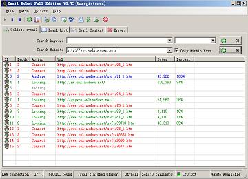 Email Spider Robot is a powerful email extraction application to extract e-mail address from the internet. It has powerful ability to search and spider web from a starting-point such as search engine, any web url or any CGI page to extract email addresses. Key Features: Up to 5,000 threads set free(Depend on your machine). Spider from any specified start web address (URL) or any keywords. You aslo can specify the spider depth level. Automaticly remove duplicate e-mail addresses? Extraction of various types of mail, including setting up the anti-extraction function of the page. Fast Import or export speed?Support TXT, EXCEL, FOXPFO, DB, XML Etc. Seamlessly Integration with Email Sender,Email Verifier.