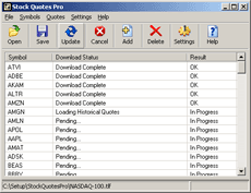 A historical quotes downloader for stock quotes and indices. Stock Quotes Pro is a software utility that allows you instantly download end-of-day historical quotes of stocks, indices and mutual funds publicly traded in US, Canada and international markets. It produces quotes output in a customizable ASCII format which makes historical stock quotes data compatible with most spreadsheet, charting and technical analysis software packages like MetaStock, SuperCharts, Omega TradeStation, Microsoft Excel and others. This is a perfect tool if you need stock quotes data for trading strategies research, charting via a third party application or for tax purposes.