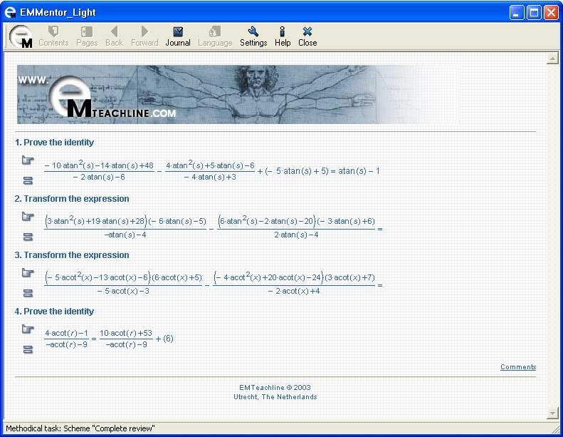 (0 Votes)This bi-lingual program offers 54800 weak and strong algebraic inequalities. Problems vary in difficulty from simple to extra difficult, such as complex fractional inequalities. Applied solution methods include substitution, grouping, factoring, method of intervals and more. Each step of solution is provided with comprehensive explaining material available in two languages. You can observe the solution course, study solution methods, learn related concepts, observe proofs of used theorems and formulas and learn mathematical lexicon in a foreign language. Special teacher's options allow developing quizes, tests of varied complexity, worksheets, lesson plans and generating 30 variant tests on the basis of a constructed example. A selection of tests is already prepared. Viewing and saving solutions in MathML format is available. This program is meant for teachers and students of regular and Montessori schools, for self-education and distant learning. Available is free fully functional version of this program.