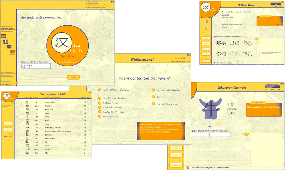 (0 Votes)Han Trainer pour MAC OS X et Big Sur est un logiciel d'apprentissage de vocabulaire chinois multim?dia à multiples facettes, combinant de nombreuses id?es, des aides mn?motechniques et un vocabulaire ?labor?, particuli?rement adapt? aux besoins des ?tudiants souhaitant apprendre le chinois. Pour mieux tenir compte la complexit? de cette langue, Han Trainer est ax? sur une approche compr?hensive de l'apprentissage: l'?tudiant comprend la "vie int?rieure" des caract?res chinois à l'aide d'associations visuelles et les ancre ainsi rapidement et durablement dans sa m?moire grâce à la mise en exergue de principes et de concepts r?currents. D?sormais, vous apprendrez votre vocabulaire plus rapidement et de mani?re plus efficace grâce à Han Trainer.