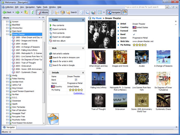 Melomania is a handy music collection program for Windows, which allows you to catalog music collections of any kind, from vinyl to MP3s, and provides you with the facilities to manage a music database, including: * automatic adding of digital tracks * information loading from Internet * lent media tracking * instant cover download * handy navigation * instant and powerful search * support of all thinkable media formats * track compilations * track filters * customized item grouping * multi-format export * printing * customized views * statistics * custom ratings * and more