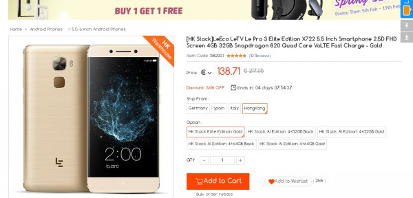 Recevez une réduction sur le LeEco Pro 3 Elite Edition X722 Smartphone FHD Screen 4GB 32GB (-60$) ou en utilisant le code GVGUZNQL. Ce bon plan est valable jusqu'au 06/03.