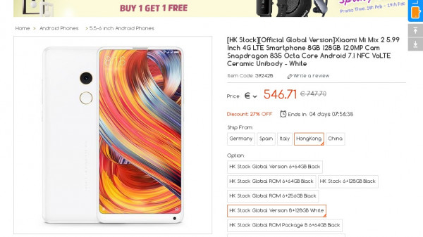Recevez une réduction sur le Xiaomi Mi Mix 2 4G LTE Smartphone 6GB 64GB Snapdragon 835 (-210$) ou en utilisant le code HYUWPTKI. Ce bon plan est valable jusqu'au 28/02.