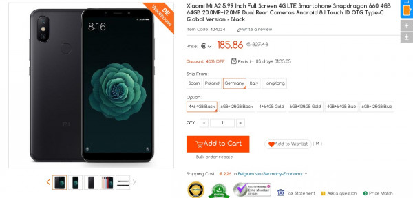 Recevez une réduction sur le Xiaomi mi A2 4GB 64GB Black Global Version DE Stock (-14$) ou en utilisant le code DNUJZIIX. Ce bon plan est valable jusqu'au 15/02.
