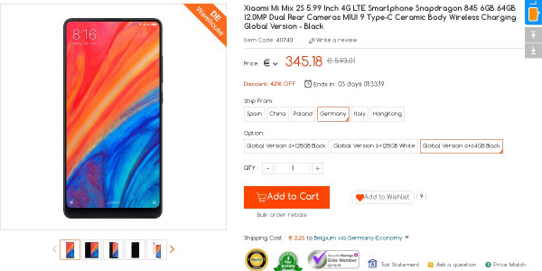 Recevez une réduction sur le Xiaomi MI MIX 2s 6gb 64GB Black Global Version DE Stock (-10$) ou en utilisant le code ZMQCXYVQ. Ce bon plan est valable jusqu'au 15/02.