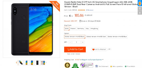 Recevez une réduction sur le Xiaomi redmi Note 5 4GB 64GBGlobal Version ES Stock (-10$) ou en utilisant le code LXANLEFH. Ce bon plan est valable jusqu'au 15/02.