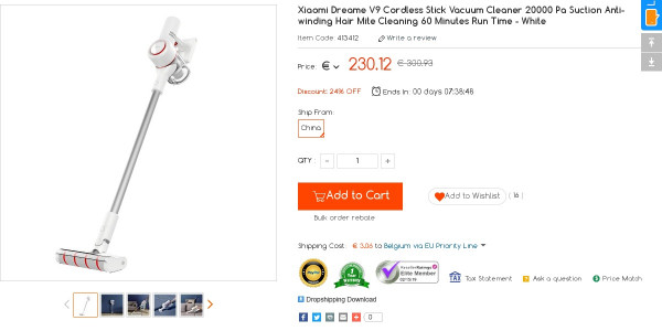 Recevez une réduction sur le Xiaomi Dreame V9 Cordless Stick Vacuum Cleaner (-10$) ou en utilisant le code KWXMDQTX. Ce bon plan est valable jusqu'au 15/02.