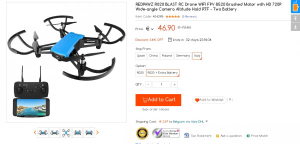 Recevez une réduction sur le REDPAWZ R020 BLAST 720P RC Drone - Two Battery (-3$) ou en utilisant le code GLEQZAVO. Ce bon plan est valable jusqu'au 15/02.