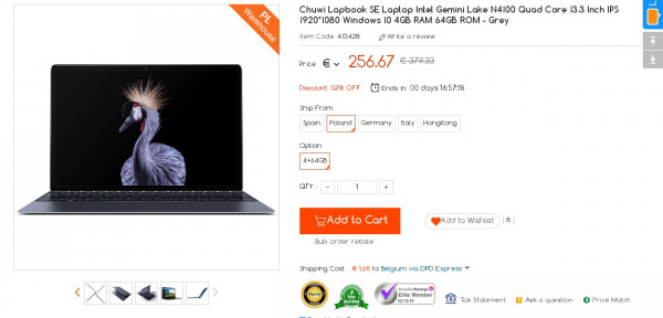 Recevez une réduction sur le PL Chuwi Lapbook SE (-16$) ou en utilisant le code GKB135T. Ce bon plan est valable jusqu'au 15/02.